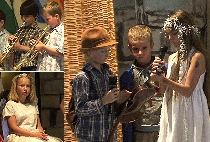 Zaubergeige bringt Sänger und Prinzessin zusammen (Fotos:Richter)(cr) Eine Uraufführung des musikalischen Märchens "Die Zaubergeige" fand gestern Abend in der Aula der Steige-Grundschule statt. Insgesamt 90 Schülerinnen und Schüler aus allen vier Schuljahrgängen hatten seit Dezember letzten Jahres zusammen mit den beiden Lehrerinnen Bärbel Weber und Heidrun Stumpf sowie mit Kriemhild Pfeifer, Leiterin des Spatzenchors, für die Aufführung geprobt.