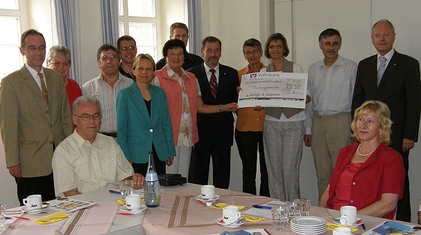 Seit Verabschiedung der Förderkriterien für diese Institutionen, die die Bank ebenfalls regelmäßig unterstützt, spendete die Bank seit 2005 aus den Zweckerträgen beispielsweise für die Renovierung von Orgeln, Kirchengebäuden, Noten oder Musikinstrumente für Chöre oder Kirchenorchester insgesamt bereits rd. 55.000 Euro. Direktor Hinterschitt appellierte an die Kirchengemeindeverantwortlichen, der Volksbank die Treue zu halten, die die Heimat und Bürger vielfältig unterstütze. Nur so könne dauerhaft "Gutes für die Region" getan werden, ganz im Gegensatz zu Direkt-, Groß- oder Postbanken, die sich regional weder kulturell noch sozial engagieren.