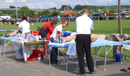 Bei der Radsportveranstaltung am vergangenen Samstag waren die Mitarbeiter des Reha-Zentrums nach Waldkatzenbach gekommen, um die Mountainbiker nach dem Rennen gegen einen geringen Obolus zu massieren. Den Erlös spendeten die Physiotherapeuten anschließend für die Jugendkasse der VfR-Nachwuchsbiker. Die Resonanz war in diesem Jahr zwar nicht ganz so gut wie bei den Aktionen in den Vorjahren, dennoch freute sich Radsportabteilungsleiter Peter Ihrig über die Spende und dankte den Mitarbeitern des Reha-Zentrums für ihr tolles Engagement und die damit verbundene Würdigung der Kinder- und Jugendarbeit des Vereins.