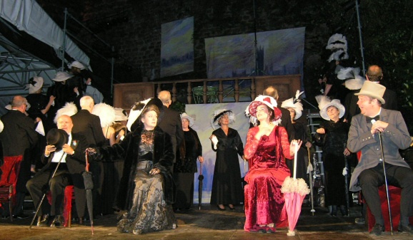 Eliza Doolittle vor imposanter Kulisse Die feine Londoner Gesellschaft trifft sich beim Ascot-Derby. (Foto:Nolten-Casado)(tw) (bnc) Ein Musical auf der Zwingenberger Bühne? Das "Experiment", wie Festspiel-Intendant Karsten Huschke die neue Musikform vor imposanter Schlosskulisse nennt, scheint zu gelingen. Die Premiere am kommenden Samstag sowie die Vorstellung am 3. August sind nach Angaben des Kartenbüros bereits ausverkauft, die Nachfrage nach Karten für die beiden weiteren Aufführungen ist ungebrochen. "My Fair Lady", das klassische Musical schlechthin, "ist wohl das populärste, das es gibt", sagt Huschke, der für die Musik von Frederick Loewe selbst am Dirigentenpult stehen wird.
