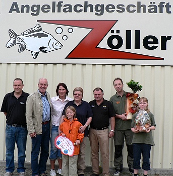 Angelfachgeschäft feierte Jubiläum Neben vielen Gästen und Kunden gratulierten Bürgermeister Peter Kirchesch (2. von li.) und der erste Vorsitzende des ASV Zwingenberg Joachim Schneider (re.) den Geschäftsinhabern Kurt und Renate Zöller (Bildmitte). (Foto: privat)(bro) (pk) Das Angelfachgeschäft Kurt Zöller in Zwingenberg kann auf eine 25-jährige erfolgreiche Geschäftszeit zurückblicken. Im Jahre 1983 eröffnete Kurt Zöller im Untergeschoss seines Hauses sein Angelfachgeschäft, das durch ein 300 qm großes Angelfachgeschäft (Neubau) direkt an der B37 in Zwingenberg ausgebaut und erweitert wurde. Mit Jubiläumsangeboten bedankten sich Kurt und Renate Zöller bei ihren Kunden für das entgegengebrachte Vertrauen und die langjährige Treue.