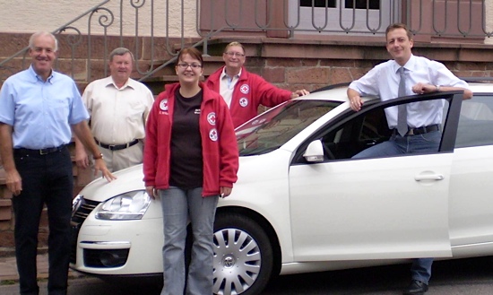 HvO bald einsatzbereit - „Zwischenstopp“ vor dem Umbau Das Bild zeigt das neue Einsatzfahrzeug (VW Golf Variant) mit dem Vorsitzenden des DRK Neckargerach Joachim Diederich (2.v.r.) und Bereitschaftsleiterin Katharina Wandernoth (3.v.r) sowie Bürgermeister-Stellvertreter Ferdinand Eiermann (2.v.l.), Binau und die Bürgermeister Peter Kirchesch (l.), Zwingenberg und Ralf Schnörr, Neckargerach (r.). (Foto: privat) (hof) (pk) Über 200 Einsätze seit der Gründung haben eindrucksvoll den Sinn und die Notwendigkeit der HvO-Gruppe bestätigt. Nachdem die Reparaturkosten des bisherigen, nahezu fahruntauglichen Einsatzfahrzeuges ständig anstiegen, entschloss sich die DRK Ortsgruppe Neckargerach zum Kauf eines soliden, neuen Fahrzeugs. Trotz vieler Spenden und trotz hoher Eigenleistungen war die Ortsgruppe dabei auf Unterstützung angewiesen – und bekam diese für die medizinische Notfallversorgung in Binau, Guttenbach, Neckargerach und Zwingenberg enorm wichtige Unterstützung auch von den politischen Gemeinden. Neben dem angesparten Eigenkapital, dem Erlös aus dem Verkauf des alten Fahrzeugs und einem Zuschuss vom DRK-Kreisverband verblieb bei dem ca. 22.000 € teuren Einsatzfahrzeug (incl. Funk, Sondersignalanlage, Beschriftung etc.) noch ein Defizit von über 10.000 €. Einen Großteil dieses Defizits konnte durch Zuschüsse der Gemeinden Binau (2.000 €), Neckargerach (5.000 €), Zwingenberg (1.500 €) und dem Förderverein der FFW Zwingenberg (500 €) nun gedeckt werden.