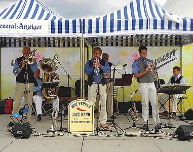 Jazz-Frühschoppen im Rahmen der Schlossfestspiele Zwingenberg Die Hot Pepper Jazz Band lädt zum Frühschoppen. (Foto:privat)(ag) (pf) Chicago Jazz vom Feinsten verspricht die Hot Pepper Jazz Band am Sonntag, 17. August, im Naturfreundehaus in Zwingenberg. Am letzten Tag der Schlossfestspielsaison 2008 gastiert die bekannte Jazzband nach dem großen Erfolg im vergangenen Jahr zum zweiten Mal in Zwingenberg.