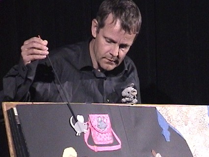 Zauberbühne zum Abschluss (Foto: Claudia Richter)(cr) Im Rahmen des Eberbacher Ferienprogramms lud das Kulturamt in diesem Jahr dreimal zum Kindertheater ein. Sowohl die Geschichte von Michel aus Lönneberg, aufgeführt vom Blinklichter-Theater, als auch "Der Zapperdockel und der Wok" vom Figurentheater Fex lockten zahlreiche kleine und große Gäste in den Saal im Eberbacher Rathaus. Den Abschluss der Kindertheater-Reihe machte gestern Christoph Frank von der Zauberbühne mit dem Stück "Alexander und die Aufziehmaus" nach Leo Lionni (unser Bild).