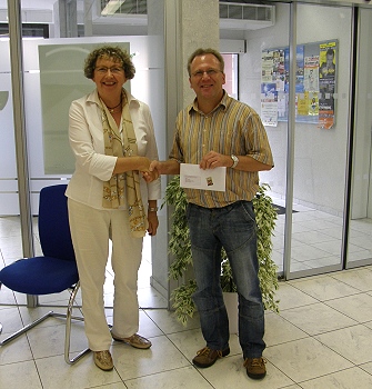 Hauptgewinn beim Gewinnsparen Der glückliche Gewinner Klaus Gärtner mit Kundenberaterin Brigitte Gerhart. (Foto: privat)(bro) (she) Kurz vor dem Wechsel in die Altersteilzeit am 1. November 2008 konnte Kundenberaterin Brigitte Gerhart in Hirschhorn noch einen Hauptgewinn aus dem Gewinnsparen übergeben. Klaus Gärtner konnte sein Glück kaum fassen, als Brigitte Gerhart ihm die freudige Nachricht zuerst telefonisch und dann schriftlich überbrachte.