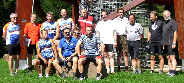 Radtour zugunsten neuer Kirchenglocken Teilnehmer der Benefizradtour am Teltschikturm in Wilhelmsfeld. Es wurden 2.000 Euro an Sponsorengeldern erradelt. (Foto: privat)