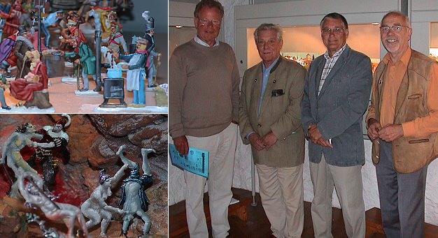 Große Welt in kleinem Maßstab V.l. Hannes Melchinger, Joachim-Albrecht Graf Bülow von Dennewitz, Dr. Wolfgang Weiß und Günter Lipski. (Fotos: Claudia Richter)(cr) In eine friedliche Welt ohne Kriegsszenen entführt eine Ausstellung im Eberbacher Zinnfigurenkabinett, denn hier im Haspelturm ist zurzeit die Sonderschau "Jenseits von Uniform und Schlachtenlärm" zu sehen.