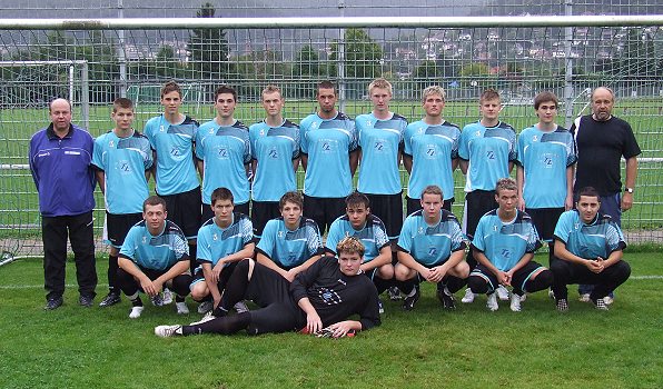 Heimspielniederlage gegen Eintracht Plankstadt Vor dem Spiel präsentierte das Team das neue Outfit: Trainer Reinhard Wurm, Patrick Schüssler, Tim Neureuter (Spielführer), Jan Dörfer, Artem Stach, Marcel Heiß, Kevin Bohn, Alban Rabl, Lukas Raab, Hans-Philipp Weissmann, Trainer Peter Stumpf