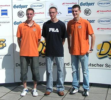 Podestplatz nur knapp verpasst V.l.: Die Schölch-Zwillinge und Dominic Merz.(Foto: privat)(bro) (rjo) Bei den diesjährigen Deutschen Meisterschaften in München verpasste die Juniorenmannschaft mit den Schützen Stephan und Friedrich Schölch sowie Dominic Merz nur denkbar knapp einen Podestplatz.