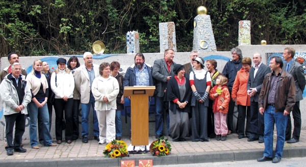 Ewald Gailing stellte in seiner Begrüßung die Entstehung des Projekts vor und berichtete, dass die Mauer in einigen hundert Arbeitsstunden, unterstützt vom örtlichen Bauhof, gestaltet wurde. Insbesondere für die ca. 30.000 Radfahrer, die jährlich durch Guttenbach und Neckargerach radeln wird die Kunst-Mauer in positiver Erinnerung bleiben.