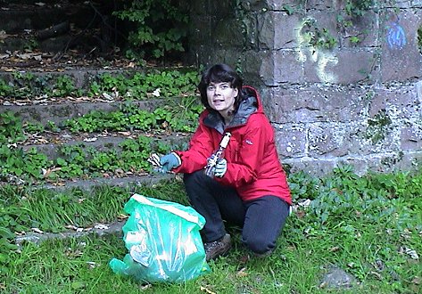 Auch ohne Helfer acht Müllsäcke gefüllt (Foto: Claudia Richter)(cr) Zu einer Müllsammelaktion rief am Montag eine Anwohnerin der Unteren Talstraße auf. Dagmar Stier ist als Wildkräuterfrau häufig im Wald unterwegs und hatte festgestellt, dass im Bereich Karlstal sehr viel Müll liegt, der teilweise regelrecht in der Landschaft entsorgt wurde. Vor etwa einem Jahr machte sie ihren ersten Müllsammelspaziergang durch das Waldgebiet, vor einem Monat einen weiteren und musste nun feststellen, dass schon wieder jede Menge Abfall in den Wald geworfen worden war.