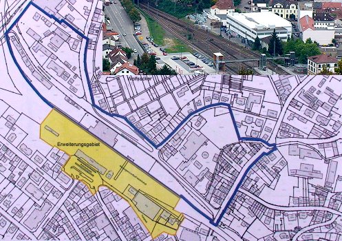 Bahnhofsgebäude soll verkauft werden (Repro/Foto: Hubert Richter)(hr) Das Sanierungsgebiet "Stadtumbau Güterbahnhofstraße" wird in der Fläche erweitert. Der Gemeinderat ersetzte mit seinem heutigen einstimmigen Beschluss die Satzung aus dem Jahr 2006, mit der die ursprüngliche Gebietsabgrenzung festgelegt worden war (wir berichteten).