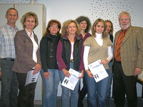 Sieben Teilnehmer legten die Zertifikatsprüfung erfolgreich ab V.l.: Hartmut Göhrig, Karin Sienel, Elke Braun, Andrea Dietz, Anja Richter, Özden Kurtulmus, Annette Nowotny und Dozent Helmut Sperling. (Foto: privat)(bro) (vhs) Am Mittwoch, 24. September, überreichte VHS-Leiter Erol Weiß in der Volkshochschule sieben Absolventen des dreisemestrigen Lehrgangs "Finanzbuchführung" das Abschlusszertifikat zum deutschlandweit anerkannten Xpert Business Finanzbuchhalter.