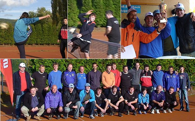 Nach der Jugendmeisterschaft im vergangenen Jahr rief der Tennis-Club Blau-Weiß Eberbach diesmal auch Erwachsene auf, sich in der kuriosen Kreuzung von Tennis und Fußballspiel zu messen. Die Resonanz war mit sechs gemeldeten Teams zwar nicht allzu groß, aber eine Gaudi war der heutige Wettkampftag für die Teilnehmer allemal. Gespielt wurde nach dem Motto "Jeder gegen Jeden", so dass am Ende die Tabelle feststand.
