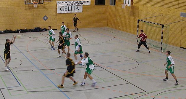 Von Beginn an sahen die zahlreichen Zuschauer in der Hohenstaufen-Halle eine überraschend einseitige Partie, in der die Eberbacher mit sehr guten Torwartleistungen, einer kompakten 6:0 Abwehr und sehenswertem Kombinationsspiel in der Offensive den Gästen aus Malschenberg in jeder Phase des Spieles überlegen waren.