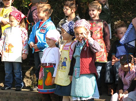 Markttag bei schönstem Herbstwetter (Foto: privat)(bro) (abh) Im Jahr 2005 fand der letzter Ernte- und Markttag statt. So war es nun mal wieder an der Zeit, solch ein Fest zu begehen. Alle freuten sich über das schöne Wetter und die vielen Gäste, als die Kiga-Kinder am 27. September um 11 Uhr den Markt mit einem eigens dafür gedichteten Lied eröffneten.