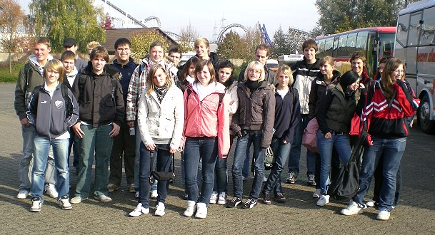 VR-Go-Club im Warner Brothers Movie Park (Foto: privat)(bro) (sch) Am Samstag, 18. Oktober, machten die VR-Go-Clubber der Volksbank Neckartal den Warner Brother Movie Park "unsicher". Kaum dort angekommen, strömten die Teens auch schon durch den Park. Wenn der Adrenalinspiegel nicht durch die Fahrt mit der ersten Holzachterbahn Deutschlands anstieg, dann spätestens als sich der Park mit Einbruch der Dunkelheit in ein Gruselkabinett der Extraklasse verwandelte. Über 250 Monster, Werwölfe und andere "Kreaturen der Nacht" trieben ihr Unwesen. Der Tag war voll an Spaß, Spannung und Action. Es gab auch ruhigere, sehr interessante, Attraktionen, wie die Eislandschaft von ICE-Age, der 4D Film von Shreck, das Filmmuseum und die Stundshows.