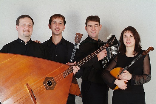 Die vier Musiker des 1995 gegründeten Quartetts: Olga Kleshchenko (Domra), Alexej Kleshchenko (Balalaika), Michail Totskij (Bajan) und Ewgenij Tarasenko (Kontrabass-Balalaika) sind allesamt Absolventen des Petrosavodsker Konservatoriums. Sie verstehen sich auf Wimpernschlag und bieten in ihren Konzerten eine erstaunliche Repertoirebandbreite, die weit über die große Tradition russischer Volksmusik hinausgeht. Getragen von zauberhaften ensembleeigenen Bearbeitungen kommen Neo-Klassisches des russischen Komponisten Alfred Schnittke genauso zu Gehör, wie Tangos von Astor Piazzolla, Swing von Django Reinhardt oder Stücke von Mozart, Rossini und Gawrilin sowie auch Filmmusiken, etwa von Maurice Jarres.