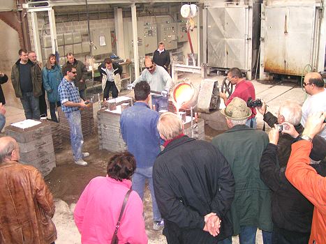 Fahrt zur Geburtsstätte der Rindenklopferin 1.200 Grad heiße Bronze wird vor den Augen der Eberbacher Besucher in die Formen gegossen
