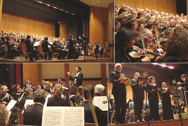 In der fast ausverkauften Stadthalle entfaltete sich die Messe zum Gedenken an den Dichter und Symbolfigur italienischer Einigungsbewegung Alessandro Manzoni italienisch heilig, italienisch religiös im Eingangsrequiem zu einer Meisterdarbietung, die im „Dies irae“ an grandioser Stelle „Quid cum miser tunc dicturus?“ zu „Salva me, fons pietatis.“ zeigte wie tief die solistische Vorstellung und Chor- wie Orchesterleistung ineinander griff. – Dass Achim Plagge ein Händchen für groß dimensionierte Veranstaltungen hat, bewies er schon beim Amerikanisch-deutschen Chorkonzert im Juni 2007 in der Michaelskirche. Dass er sich so weit hochauf schwingen würde, konnte man im Voraus nicht ahnen. Hatte er den solistischen Part nicht nur mit virtuosen Sängerinnen und Sängern besetzt, die beiden Chöre musikalisch aufs engste zusammengeschweißt, sondern auch das Orchester großartig geführt, realisierte er zwischen Ferntrompeten und dem lauschenden Publikum dem Komponisten ein Andenken aller Facetten der um Erlösung ringenden menschlichen Seele, wie sie vielleicht dramatischer in keinem anderen Werk wie dem Verdi-Requiem ausgedrückt werden kann, nämlich im Geniestreich des Komponisten der aus „Libera me“ für die ursprüngliche „Messa per Rossini“ keimte, eine Totenmesse nach liturgischem Muster, eine Komposition unaussprechlicher Musik.
