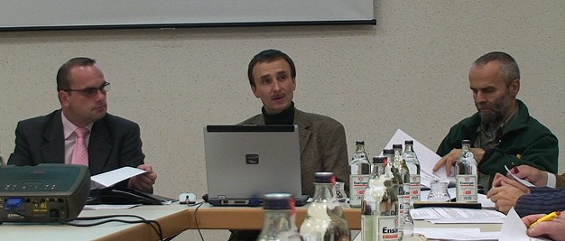 Betriebspläne für den Gemeindewald beschlossen Dr. Dieter Münch (M.) und Klaus Berberich (r.) vom Kreisforstamt mit Bürgermeister Jan Frey bei der Vorstellung der Forstbetriebspläne für Schönbrunn. (Foto: Hubert Richter)(hr) Gut 2.100 Festmeter Holz will die Gemeinde Schönbrunn im kommenden Jahr in ihrem Wald einschlagen. 46 Prozent davon sollen Fichten sein, der Laubholzanteil am geplanten Einschlag beträgt etwa 17 Prozent. An weiteren Betriebsarbeiten sind so genannte Wertästungen, in geringem Umfang Pflanzarbeiten sowie Schutzmaßnahmen gegen Wildschäden vorgesehen. Wie Forstbezirksleiter Dr. Dieter Münch und Revierleiter Klaus Berberich vom Kreisforstamt erläuterten, wird aus dem Gemeindewald im nächsten Jahr ein Gewinn von 24.300 Euro erwartet. Einnahmen von 107.550 Euro stehen 83.250 Euro an geplanten Ausgaben gegenüber. Im Jahr 2007 war mit knapp 3.300 Festmetern deutlich mehr Holz geschlagen worden, der Überschuss betrug gut 45.000 Euro. Die Fläche des Schönbrunner Gemeindewaldes beträgt nach der Waldflurbereinigung insgesamt 334,4 ha.