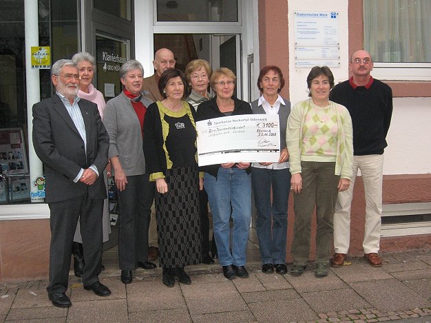 Anlässlich des Apfeltags Mitte Oktober organisierte das Team um das Ehepaar Elsbeth und Reinhard Nollert einen Flohmarkt, und der Erlös dieses Flohmarktes konnte sich sehen lassen. Einen Scheck in Höhe von 3.100 Euro konnte Hans Martin Brück am Donnerstag aus den Händen des Flohmarktteams entgegennehmen. Bereits seit 2004 unterstützt das Flohmarktteam das Diakonische Werk Eberbach und konnte bis zum heutigen Tag bereits mehr als 13.000 Euro überreichen. Brück betonte, dass dieses Geld direkt an bedürftige Menschen weitergegeben wird und nichts davon in der Verwaltung „hängenbleibt“.