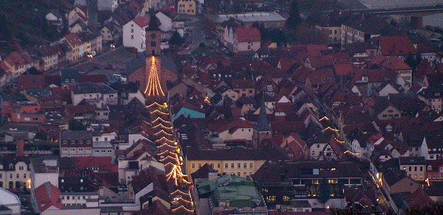 Innenstadt ist auf die Weihnachtszeit eingestellt Die Weihnachtsbeleuchtung in den Eberbacher Einkaufsstraßen strahlt schon. (Foto: Hubert Richter)(cr) "Advent in Eberbach - einfach märchenhaft". Unter diesem Motto starten am kommenden Wochenende die diesjährigen Weihnachtsaktionen der Eberbacher Werbegemeinschaft (EWG). Bereits jetzt sind in den EWG-Geschäften die Weihnachtslose erhältlich, bei denen Preise im Gesamtwert von über 5.000 Euro gewonnen werden können.