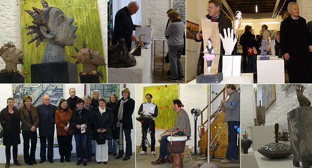 Vielfältiges Kunsthandwerk in der Galerie Artgerecht Unten links Galeristin Juliane Kehm (Mitte) mit einigen ausstellenden Künstlern, daneben "Steffi Müller & Co.". (Fotos: Hubert Richter)(hr) Eine breite Palette künstlerischer Arbeiten zeigt seit heute die Galerie Artgerecht in der Friedrich-Ebert-Straße in Eberbach.