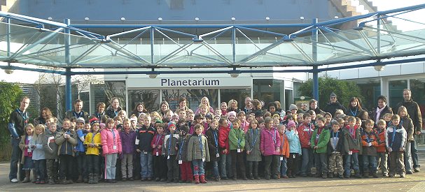 Wo geht es denn hier zur Milchstraße? (Foto: privat)(bro) (sch) Über 110 VR-Primax-Clubber (zwischen sechs und neun Jahren) der Volksbank Neckartal eG erkundeten vergangenen Samstag das Planetarium in Mannheim. Die Decke des Kuppelraums verwandelte sich schnell in eine Traumwelt voller faszinierender Bilder. Die Sterne funkelten so klar und nah, als wären sie echt. Zusammen mit einer visuellen Klasse erlebten die Kinder eine Reise durch unser Sonnensystem. Der Film erzählte und erklärte auf kindgerechte Art sehr viel über die neun Planeten in unserem Sonnensystem: wie sie heißen, aussehen, verschiedene Sternbilder, über den Weltraumschrott und die karge Landschaft des Mars.. Auch, dass wir alle auf unsere Erde aufpassen müssen. Nach so vielen Eindrücken landeten die Kids wieder auf dem schönsten Planeten – der Erde. Zum Abschluss ging es in ein Fastfood-Restaurant. Ein beeindruckender Tag ging zu Ende - und alle freuen sich schon auf den nächsten VR-Primax-Ausflug.