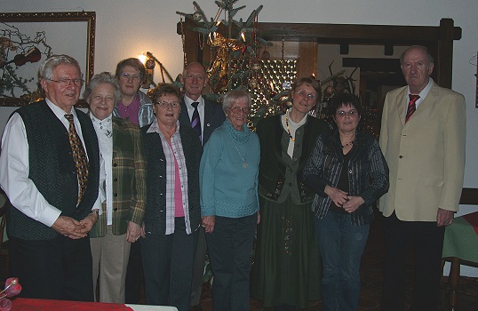 Die fleißigsten Wanderer des Jahres 2008 Die geehrten Wanderfreunde. V.l.: Willi Wäsch, Ilse Schwinn, Helga Keller, Barbara Barzantny, Klaus Reinhard, Ursula Empel, Margarete Olbert, Janka Ernst und Vorstand Helmut Keller. (Foto: privat)(bro) (hk) Zu ihrem alljährlichen Adventskaffee trafen sich die Mitglieder des OWK Eberbach am Sonntag, 30. November, im "Kühlen Krug". Nach dem Genuss von Kaffee und Kuchen wurden die fleißigsten Wanderer des Jahres 2008 geehrt.