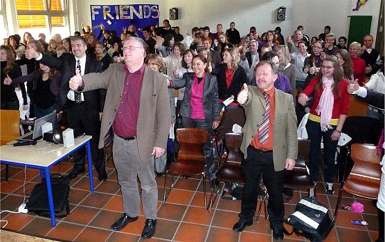 Oberzent-Schule im Zeichen von Glück und internationaler Freundschaft (Foto: privat)(bro) (bh) "Sind wir glücklich, weil wir gut sind, oder sind wir gut, weil wir glücklich sind?" Dies war eine der zentralen Fragen am vergangenen Donnerstagnachmittag in der Oberzent-Schule Beerfelden, als im Rahmen einer Feierstunde das neue Comenius-Schulprojekt gemeinsam mit Gästen aus verschiedenen europäischen Ländern eröffnet wurde. Für die Eröffnungsveranstaltung angereist war auch der Schulleiter der Willy-Hellpach-Schule Heidelberg, der das Unterrichtsfach "Glück" an seiner Schule eingeführt hat und darüber referierte.