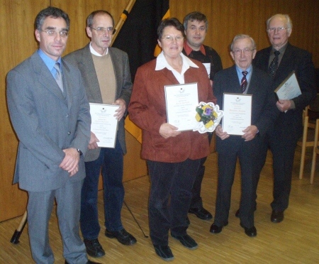 Im Rahmen der anschließenden Feierstunde, konnten Pfarrer Mathias Stößer und der 1. Vorsitzende der Kolpingsfamilie, Wendelin Amann und Karl Trauth für 60jährige Treue zum Kolpingwerk ehren. Für 25jährige Treue wurden Käthe Häffner und Rudolf Urmetzer auszeichnet.