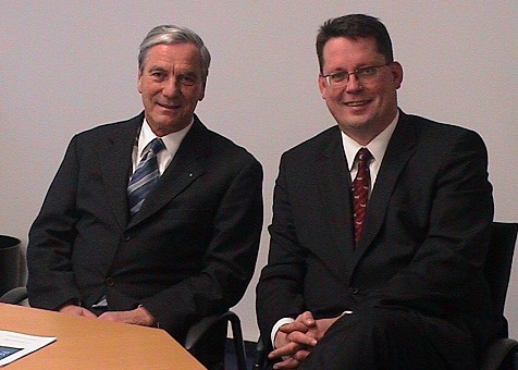 Ab Januar neuer Geschäftsführer beim Eberbacher Kapselhersteller Dr. Gunter Blankenhorn (l.) und sein Nachfolger Stefan Jütten. (Foto: Claudia Richter)(cr) Nach 21 Jahren Tätigkeit als Geschäftsführer der Firma R. P. Scherer GmbH & Co. KG will Dr. Gunter Blankenhorn zum Jahresende in den Ruhestand wechseln. Das gab der 65-Jährige heute bekannt und stellte auch gleich Stefan Jütten (46) als seinen Nachfolger vor.