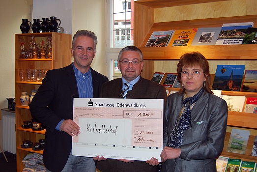 Quint sdi GmbH unterstützt den Keilvelterhof (Foto: privat)(bro) (sz) Die Quint sdi GmbH, Anbieter im Bereich Energieeinsparung für Druckunternehmen, hat sich auch in diesem Jahr wieder für eine soziale Einrichtungen der Umgebung eingesetzt. Aus der Hand von Geschäftsführer Michael Braner erhielten Jürgen Walter, Geschäftsführer der Odenwald-Regional-Gesellschaft mbH (OREG), und Susanne Seubert, Geschäftsbereichsleiterin Wirtschaftsservice der OREG für den Keilvelterhof, jetzt einen Scheck über 1.250 Euro. Passend zum Geschäftsmodell der Quint sdi GmbH soll das Geld vornehmlich für die Modernisierung der vorhandenen Stromversorgung auf dem Hof genutzt werden. Zu den Leistungen des Keilvelterhofs gehört neben dem Betrieb eines regionalen Freilandmuseums vor allem ein Qualifizierungsprojekt für benachteiligte Jugendliche, die ohne berufliche Perspektive die Schule verlassen haben.