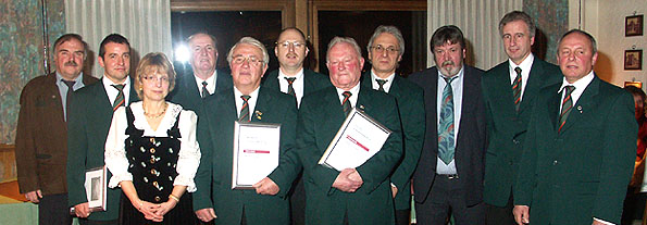 Gleich zwei Jubilare konnten für 50 jährige Sängertätigkeit mit der Goldenen Ehrennadel mit eingravierter Anzahl der Sängerjahre und Ehrenurkunde seitens des Deutschen Sängerbundes geehrt werden. Es waren dies Willi Kopp und Franz Sick. Beide erhielten zudem den Ehrenausweis des kurpfälzischen Sängerkreises Heidelberg.
