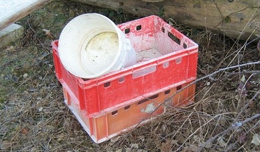 Umweltfrevel in Pleutersbach (Foto: Polizei)(hr) (pol) Ein bislang unbekannter Umweltfrevler hat in der Zeit vom 27. Dezember bis 1. Januar in Pleutersbach auf einem Wiesengrundstück an der verlängerten Ersheimer Straße, Gewann Unterer Wechselberg/Oberacker, eine größere Menge Bauschutt unerlaubt entsorgt. Hierbei handelt es sich um Reste von Rigips- und Pressspanplatten, Mosaikfliesen, Fliesenkleber sowie drei weiße Eimer. Auffallend waren auch zwei orange/rote Plastikwannen, welche mit Fliesenkleber- und Fugenmörtelresten verunreinigt waren (unser Bild).