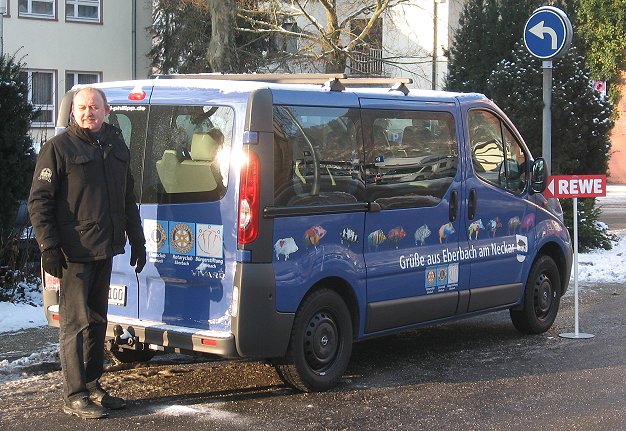 Pünktlich um 10 Uhr kam Keßler heute morgen am Bahnhof mit dem Jugendbus an, der von der Stadt Eberbach kostenlos zur Verfügung gestellt wird, um älteren oder gehbehinderten Bewohnern der Innenstadt die Möglichkeit zu geben ihre Einkäufe im Rewe-Markt auf der anderen Seite der Bahngleise zu erledigen. Anlass hierfür ist die Schließung des Tengelmann-Marktes in der Bahnhofstraße und der noch nicht installierte Aufzug an der nördlichen Seite des Bahnstegs, der frühestens im März geliefert werden soll.