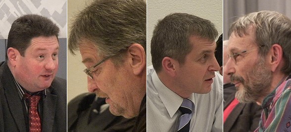 Finanzkrise verstärkt Unsicherheit - Änderungen am Zahlenwerk in letzter Minute Die Sprecher der Fraktionen bei der heutigen Haushaltsverabschiedung: Marcus Deschner (CDU), Rolf Schieck (SPD), Peter Wessely (FWV) und Dr. Harald Grote (AGL) (v.l.). (Fotos: Hubert Richter)(hr) Finanzplaner sind derzeit nicht zu beneiden. Ist es auch in "normalen" Zeiten für den Stadtkämmerer schon schwierig genug, etwa die städtischen Einnahmen wie Gewerbesteuer für das kommende Jahr zielsicher zu taxieren, so trägt die aktuelle Unsicherheit über Ausmaß und Verlauf der weltweiten Finanzkrise vollends dazu bei, dass die Haushaltsplanung zum Blindflug wird. Das zeigte sich heute auch bei der Verabschiedung des städtischen Haushaltsplans für 2009.