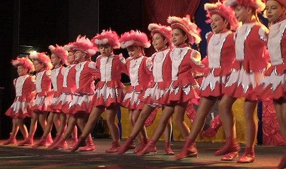 Traditionell hat der karnevalistische Tanz eine große Bedeutung bei den "Kuckucken", und in diesem Jahr ist den Garden sogar der Kampagneorden der KGK gewidmet. Kein Wunder also, dass dem Publikum in den Prunksitzungen auch diesmal eine Fülle von Tanzshows geboten wird. Nach den Ranzengarde-Junioren als "Blaue Jungs" ließ sich gestern beim Marschtanz der jungen "Kuckucksküken" schon manches Talent ausmachen. Eine "Madagascar"-Show zeigten die kleinen "Kuckuckskrümel" gemeinsam mit den größeren "Kuckuckskids", und Tanzmariechen Jana Geilsdörfer wirbelte rasant über die Bühne. Die "Juniorengarde" ließ mit Clownerie Zirkusluft aufkommen, und die "Kuckucksgarde" sorgte ebenso wie später die "Prinzengarde" mit einem zackigen Marschtanz für Stimmung. Bayrisch-tirolerisch ging es beim Schautanz der "Nesthocker" zu, und nachdem die "Elwetritsche" das Thema Liebe in allen Facetten tänzerisch aufgearbeitet hatten, ging es mit "Kuckuck-Sänger" Jürgen Huber und dem Gassenhauer "Viva Colonia" - umgetextet zu "Feiern in Eberbach" - ins Finale.