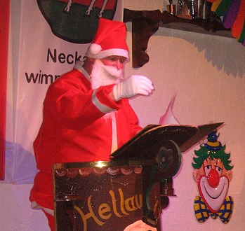 Zum Startbild (ko) Nach der ersten Faschingssitzung am Freitagabend, die traditionell im Stammlokal "Bergstübel" in Neckarwimmersbach stattfand, prunkten die Narren der KG Urmel am Samstagabend im Vereinsheim des SV 1924 Eberbach in der Au. Nach dem Ein- und gleich wieder Ausmarsch des Elferrats übernahm Sitzungspräsident Bernhard "Lungo" Walter in gewohnter Manier die Regie des Abends. Zur Einstimmung wurde der Urmel-Schlachtruf „Zicke, Zacke....Zicke, Zacke....Zicke, Zacke..... Urmel, Urmel, Urmel“ geübt.