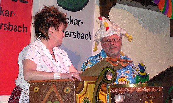 Als "ein verliebtes Ehepaar 2009" konnte das närrische Publikum nun Inge Hold und Joachim Schwab erleben, die etliche Nettigkeiten für einander bereit hatten, z.B. einen selbstgebastelten Stuhl, der nur noch vom Elektriker angeschlossen werden musste oder einen seltsamen Hut, der der Skalp der Schwiegermutter war. Im Anschluss erzählte Hans Georg Hold von skurrilen Begebenheiten in der Sauna („...denn wer schwitzt, bleibt gesund...“). Viel Beifall bekam das Männerballett (Elferräte) für seine Interpretation von „Küss die Hand, schöne Frau“ und auch die Tanzdarbietung der „Girls from the New Generation“ (Isabell Rosberg, Simone Ulbricht und Kim Koch) begeisterte das Publikum.