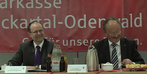 Von der Finanzkrise sei die Sparkasse nur indirekt betroffen, sagte Vorstandsvorsitzender Gerhard Stock. Man habe nicht in riskante Geldanlagen investiert, sei kommunal und regional verankert und sorge aufgrund des ausgeklügelten Haftungsverbundes für Stabilität innerhalb der Sparkassengruppe. Dennoch: Der Ertrag aus dem Tagesgeschäft der Sparkasse Neckartal-Odenwald ist vor allem wegen der allgemein schlechten Marktbedingungen und niedriger Zinsen um rund 25 Prozent gegenüber 2007 zurückgegangen. Aufgrund anderer Einflussfaktoren wie beispielsweise vorgenommene Wertberichtigungen offenbart sich das in der Bilanz auf den ersten Blick aber nicht: Die Bilanzsumme ist gegenüber dem Vorjahr angestiegen und betrug zum Jahresende 2,255 Milliarden Euro. Den ausgewiesenen Bilanzgewinn bezifferten Stock und Augustin mit 1,48 Millionen Euro, im Vergleich zu 2007 sogar eine kleine Steigerung um knapp 60.000 Euro.