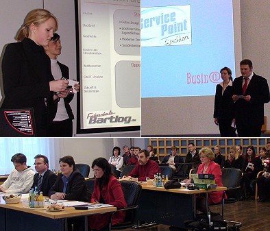 Die Gruppe Women@Work (Lena Götz, Constanze Koppe, Cecilia Petteo, und Nadine Schulz) beschäftigte sich mit der Fahrschule Bartlog in Eberbach (unser Bild oben links), die Gruppe Busin@t (Carsten Ahlers, Julia Deschner, Tanja Hamm, und Lisa Morr) analysierten den Service Point in Hirschhorn (Bild rechts), und die Gruppe Power Unlimited (Sabine Eberle, Melanie Hiller, Theresa Rein, Daniela Völker und Jennifer Wiegand) befasste sich mit der Hirsch-Apotheke in Hirschhorn.