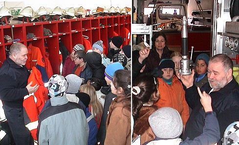 Beeindruckend waren die Bilder, die während der unterschiedlichsten Einsätze in der Vergangenheit aufgenommen und den Kindern heute gezeigt wurden. Interessiert stellten die Viertklässler fest, dass die Informationen, die sie zum Beispiel über den Schutzanzug eines Feuerwehrmannes gelernt hatten, auch tatsächlich mit der Realität übereinstimmen. Der Höhepunkt der schulexternen Veranstaltung aber war - nicht nur für die Jungs - die Fahrt mit der Drehleiter.
