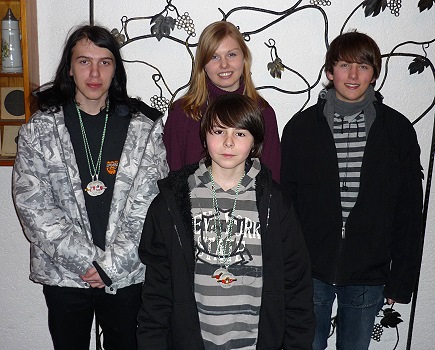Erfolge bei den Kreismeisterschaften für Luftdruckwaffen V.l.: Ulrich Schmidt, Nina Johe, Marvin Wäsch und Mirko Klingler (vorne). (Foto: privat)(bro) (tm) Bei den kürzlich stattgefundenen Kreismeisterschaften erreichte die Eberbacher Schützenjugend durchweg vordere Plätze.