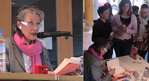 "Das Buch zeigt die Verbindung von Generationen und Nationen und soll Werte vermitteln", so die Schriftstellerin. In Eberbach hörten die Jugendlichen gebannt den Geschehnissen zu, bevor sie der Autorin zahlreiche Fragen zu ihrer Person und zum Buch selbst, das im Jahr 2006 auf der Buchmesse vorgestellt wurde, stellten. Das Buch ist unter den ISBN-Nrn. 3-937640-30-4 bzw. 978-3-937640-30-3 im Buchhandel erhältlich.