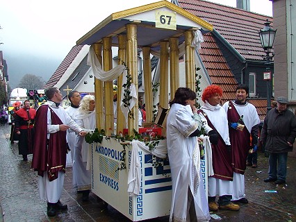 Unter der Regie der Carnevalgesellschaft "Hirschhorner Ritter" beteiligten sich viele Fastnachtsvereine, Gruppen und Musikkapellen aus der Region. Der Nieselregen tat der guten Stimmung keinen Abbruch, auch wenn diesmal nicht ganz so viele Narren den Zugweg säumten wie in den Vorjahren.