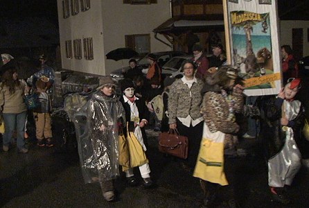 Das Regenwetter dämpfte die Stimmung der Närrinnen und Narhallesen kaum, und nach der Ankunft des Gaudiwurms im Gemeindezentrum ging es dort in der Halle noch stundenlang närrisch rund. Mit dabei waren neben den Sensbachtaler Gruppen Teilnehmer aus Beerfelden, Vielbrunn, Dielbach, Waldkatzenbach und Reisenbach. Aus Eberbach machten die KG Kuckuck mit einer bunten "Madagascar"-Gruppe sowie die "Fußball-Bienen" des Stammtisches FSV Löwen aus Pleutersbach mit. Musikalisch begleitet wurde der Umzug wieder vom Spielmannszug aus Schöllenbach.