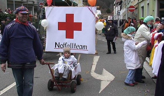 Bunte und lautstarke Narrenschar zog durch Eberbach "Notarzt" Günter Lipski (r.) mit seinem Team. (Foto: Hubert Richter)Mehr Bilder (Klicken zum Vergrößern):