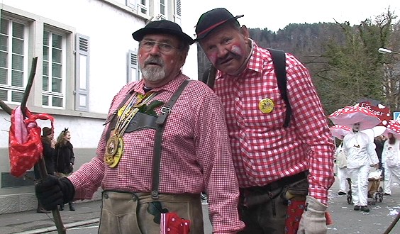 Bunte und lautstarke Narrenschar zog durch Eberbach Zwei müde Wanderer. (Foto: Hubert Richter)Mehr Bilder (Klicken zum Vergrößern):